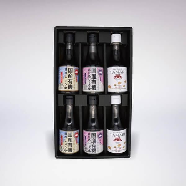 ・国産有機濃口しょうゆ(一番しぼり)150ml×2本 ・国産有機再仕込しょうゆ(二段仕込)150ml×2本 ・premium TAMARI 150ml×2本 |